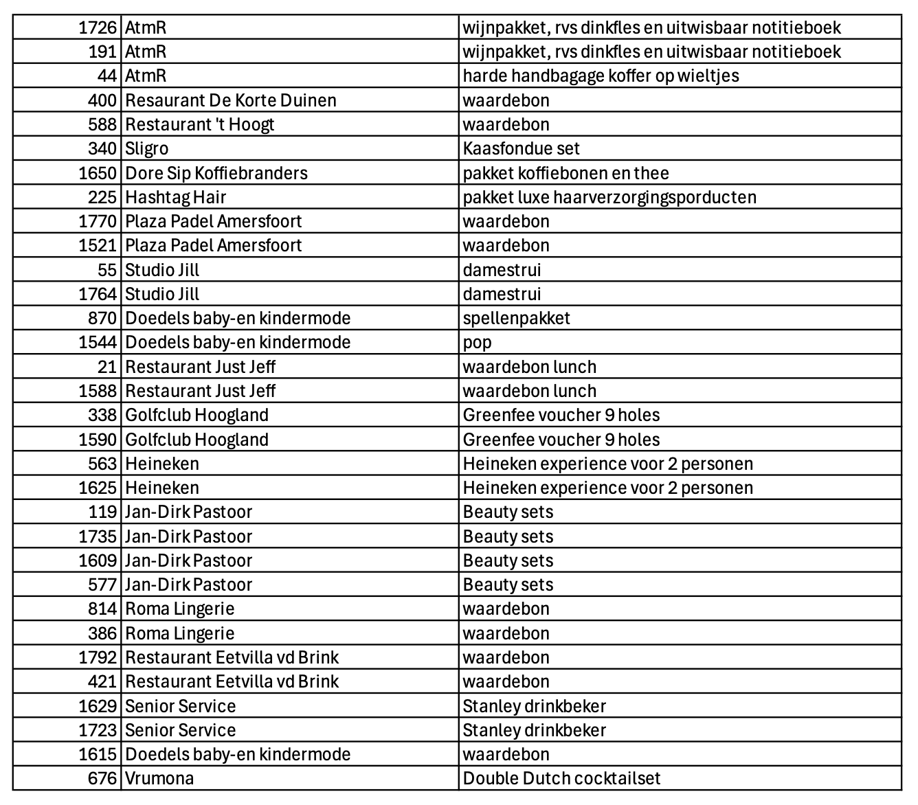 En ook de prijzen voor de loterij waren spectaculair. Van privévluchten tot lingeriebonnen, golfclinics en zelfs een winterbaan. Dankzij het netwerk van team oliebollen, onze leden en van ons kersverse sponsorcommissielid Bart van Zuilekom hebben we een lange lijst van prijzen mogen verloten.